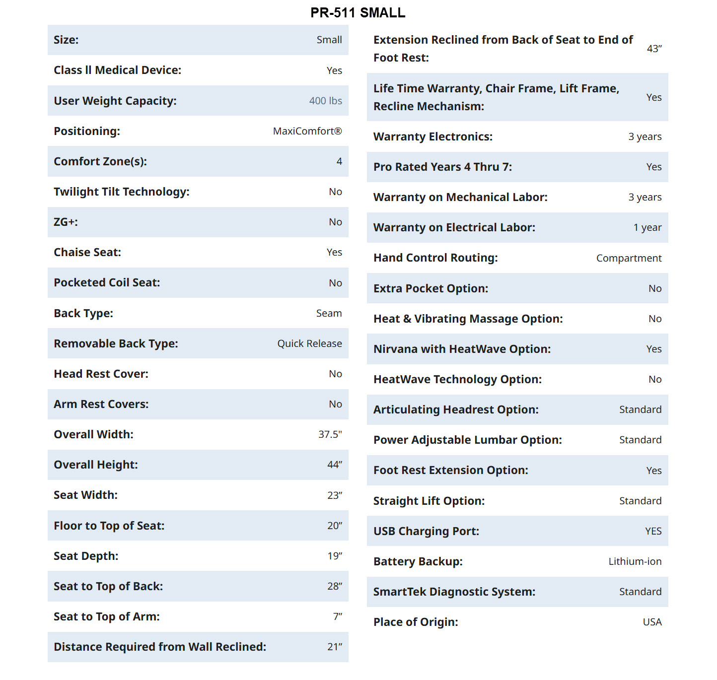 CLICK TO VIEW PR-511 SPECIFICATIONS