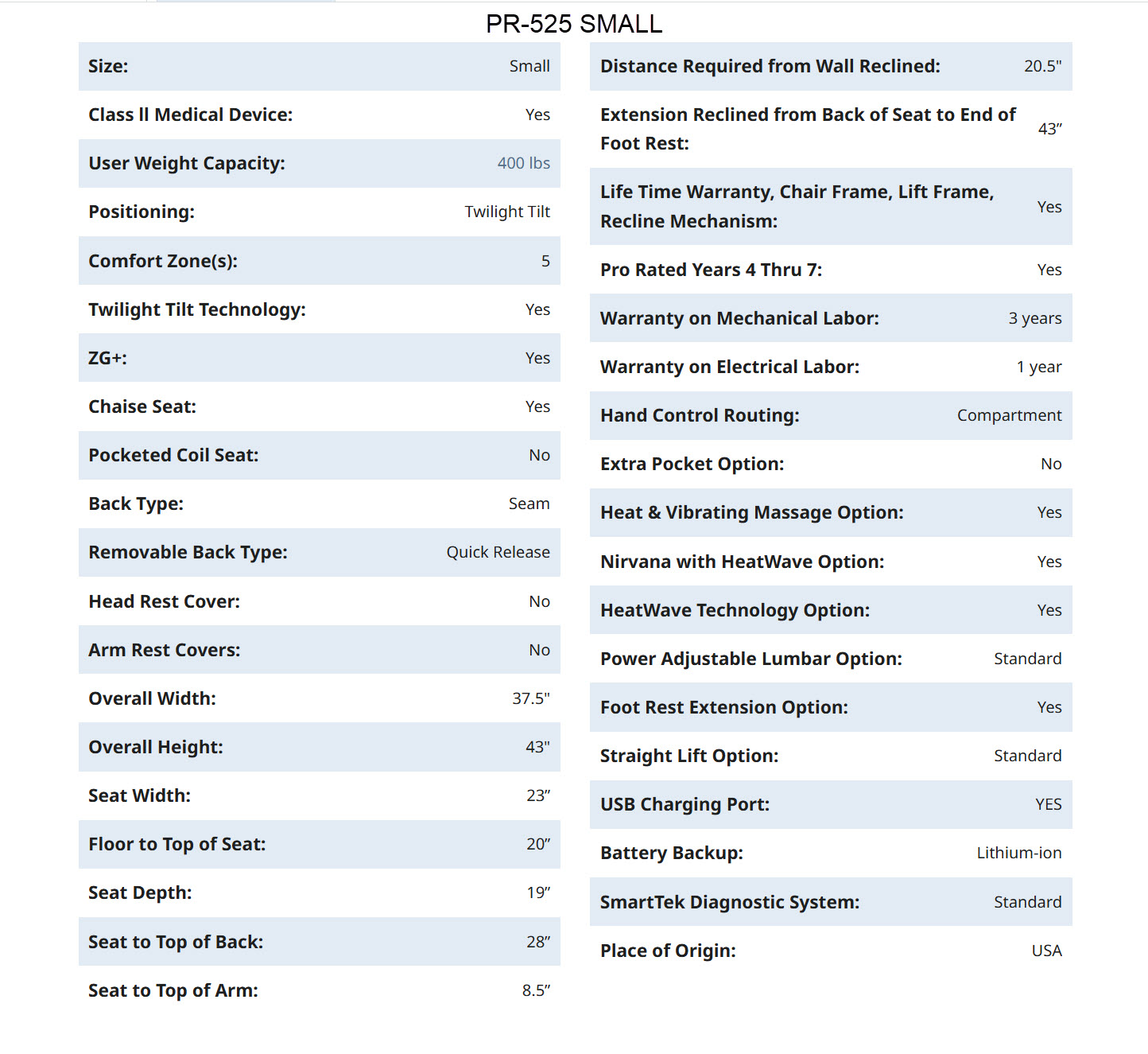 CLICK HERE FOR PR-525 SPECIFICATIONS