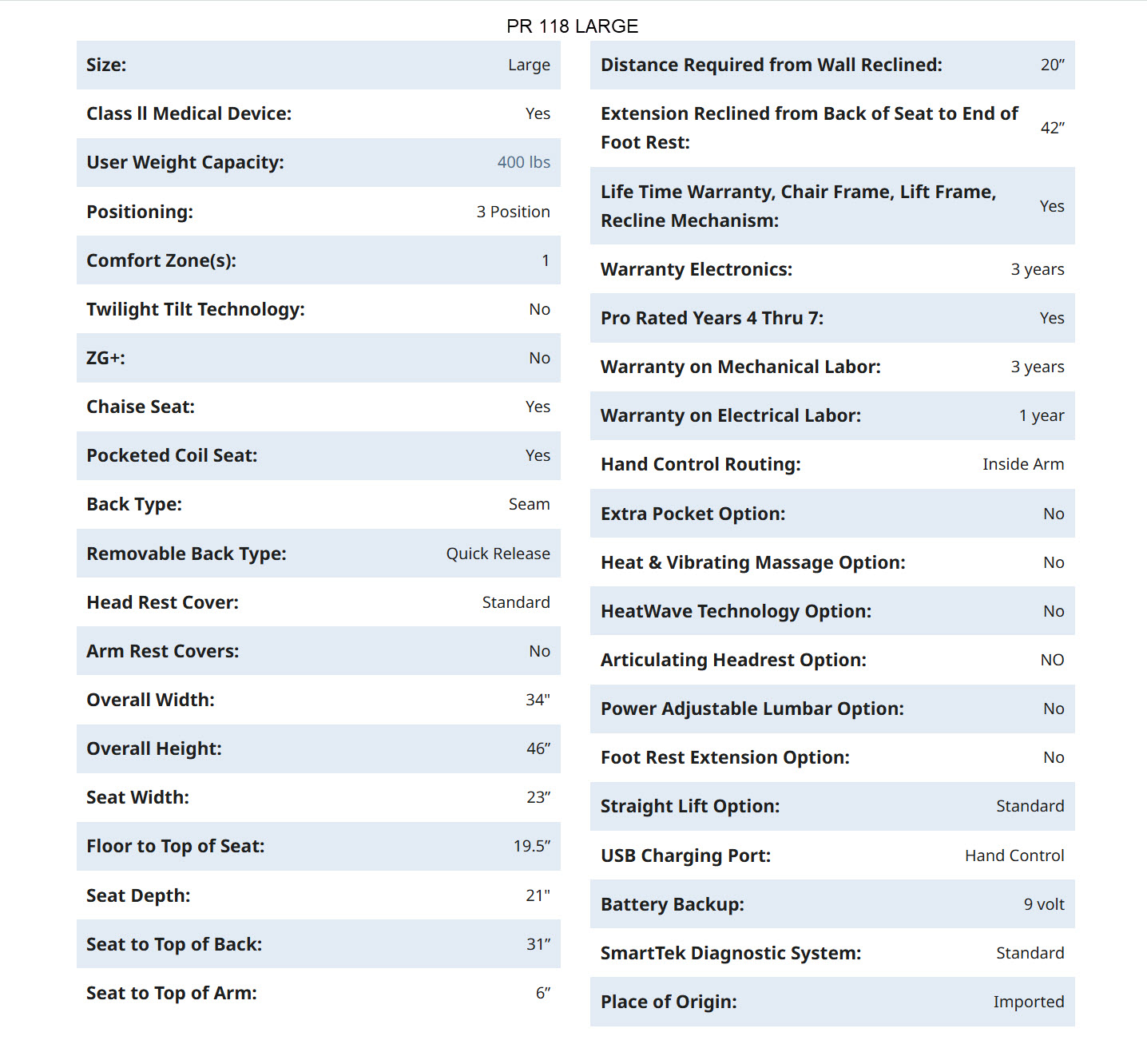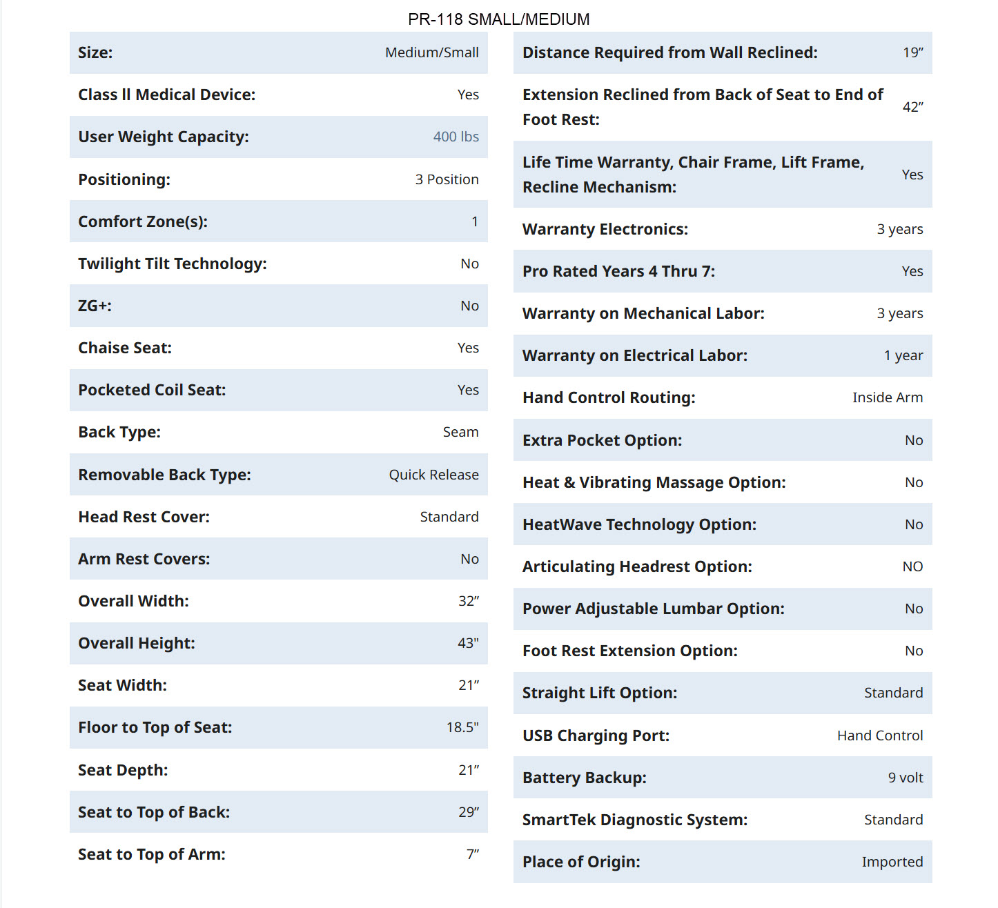 CLICK HERE FOR PR-118 SPECIFICATIONS