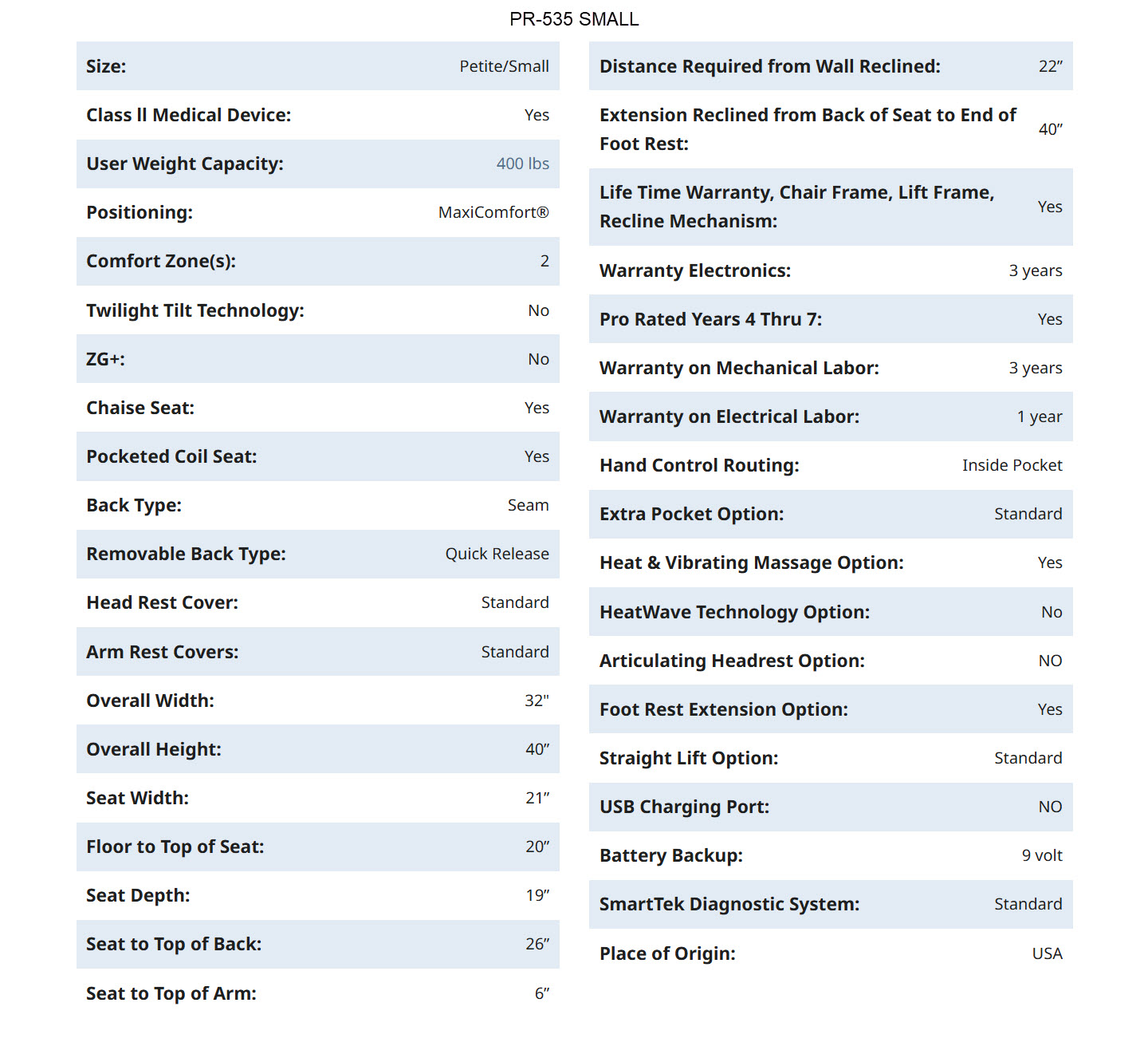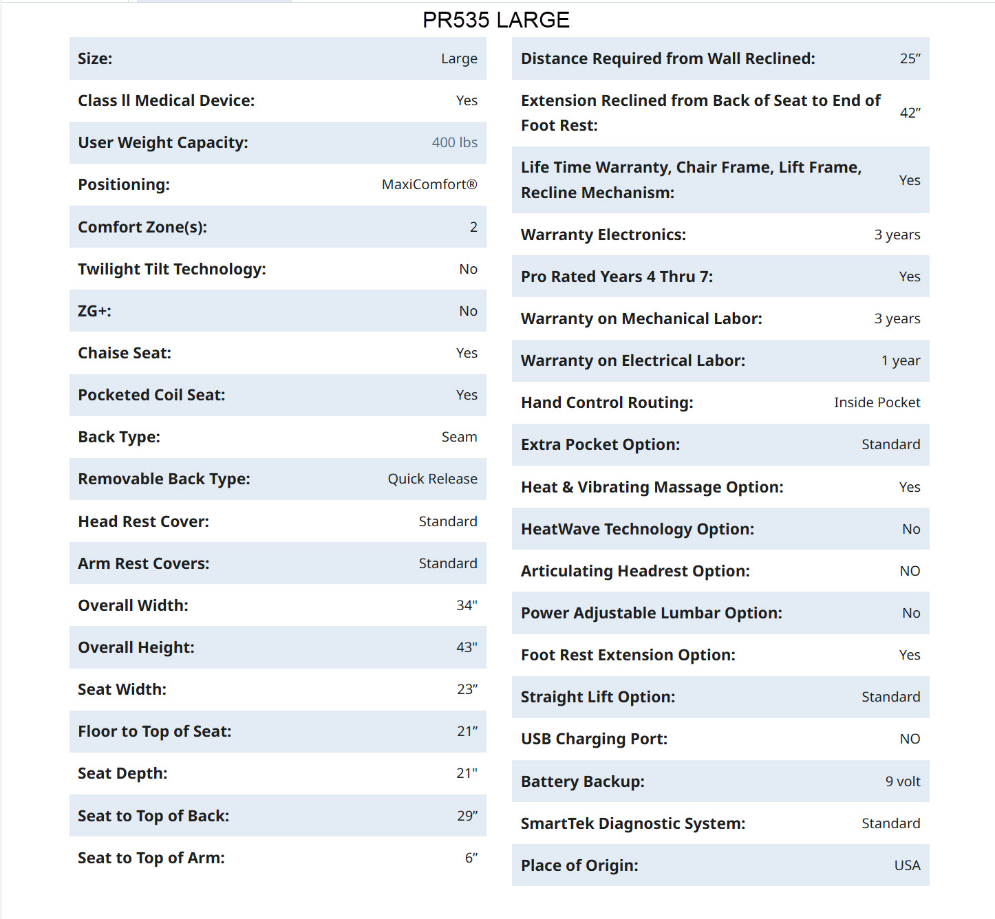 CLICK HERE FOR PR-535 SPECIFICATIONS